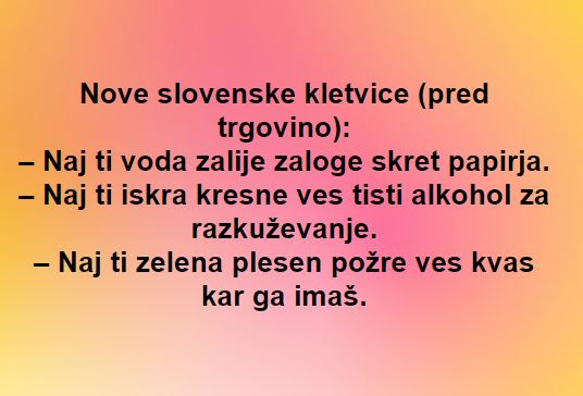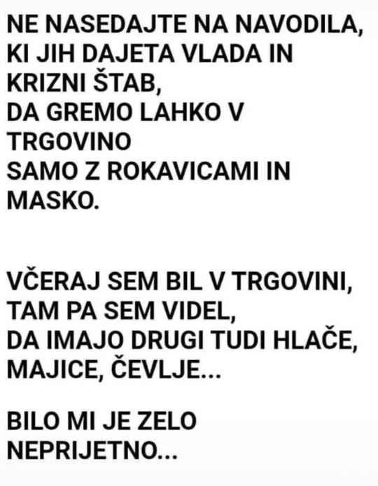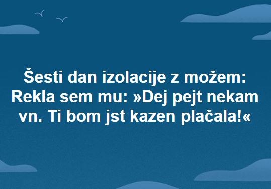 Vsekakor pa smeh dokazano koristi v boju z tesnobo in strahom, ki je v teh dneh prisoten v mnogih izmed nas. Smeh pa bi naj pozitivno vplival tudi na naš imunski sistem. Zato vam v nadaljevanju “serviramo” nekaj pogostih spletnih šal na račun koronavirusa in karantene. Želimo, da vam popestrijo dan.