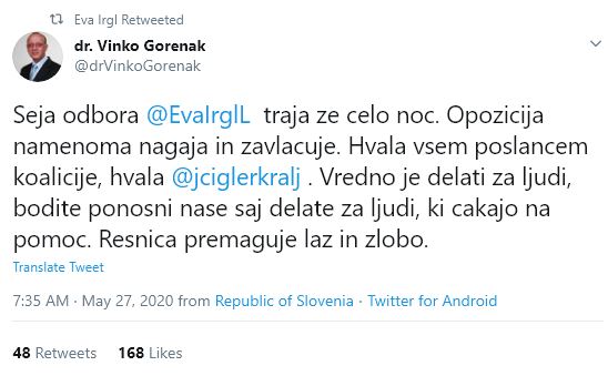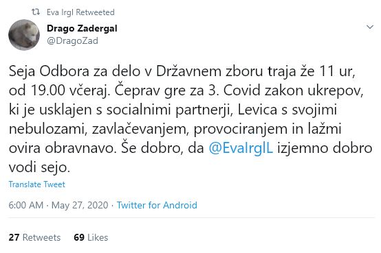 Dodal je, da nikjer na svetu v času epidemije ni opozicije, ki bi celo noč zavlačevala s sprejemom zakona, ki je izrazito nepolitičen in napisan zato, da se vsem pomaga.