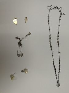 Na podlagi odredbe sodišča so pri obeh opravili osebno preiskavo in pri njiju našli in jima zasegli dva obeska, par uhanov s perlami, dve verižici iz kovine srebrne barve, sončna očala, drobižnico, mošnjiček ter nekaj denarja v različnih valutah.