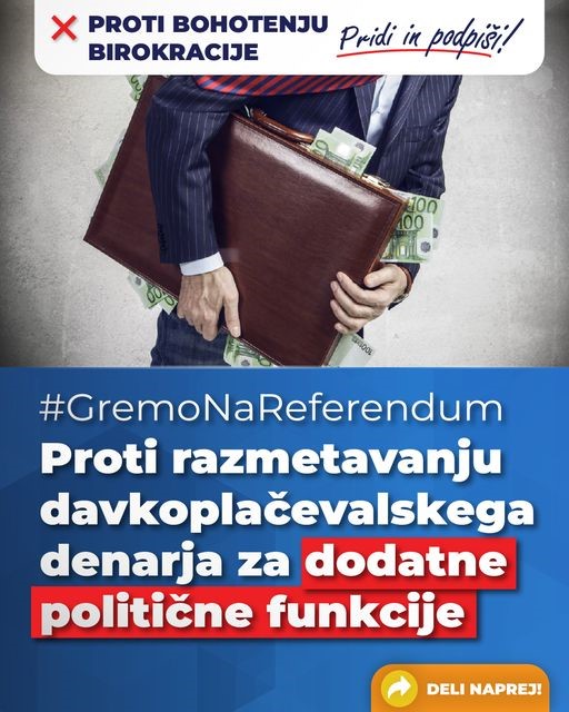 PROTI BOHOTENJU BIROKRACIJE – za referendum o zakonu, ki nepremišljeno povečuje število ministrstev iz 17 na 20n zagotavlja neizvoljenim politikom funkcije. Več o Zakonu o Vladi Republike Slovenije
