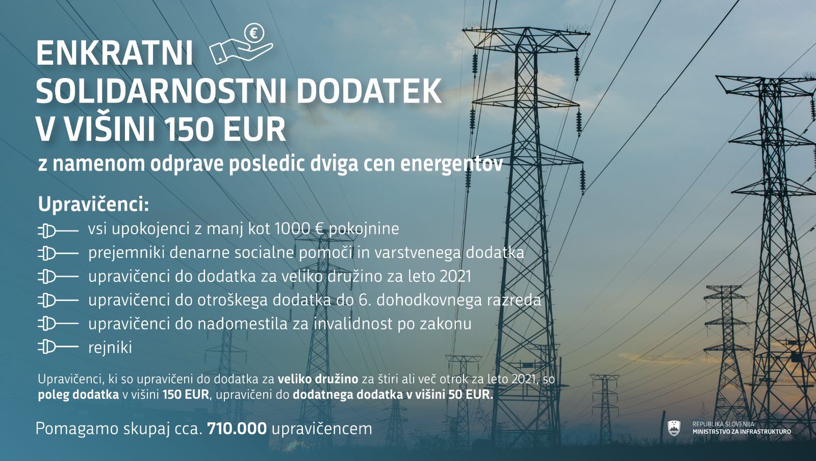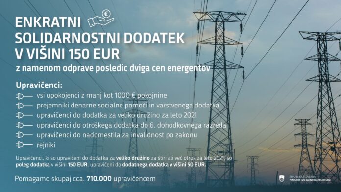 Zaradi izboljšanja socialne varnosti ranljivih skupin se določi izplačilo enkratnega solidarnostnega dodatka v višini 150 evrov za namen odprave posledic povečanja cen energentov