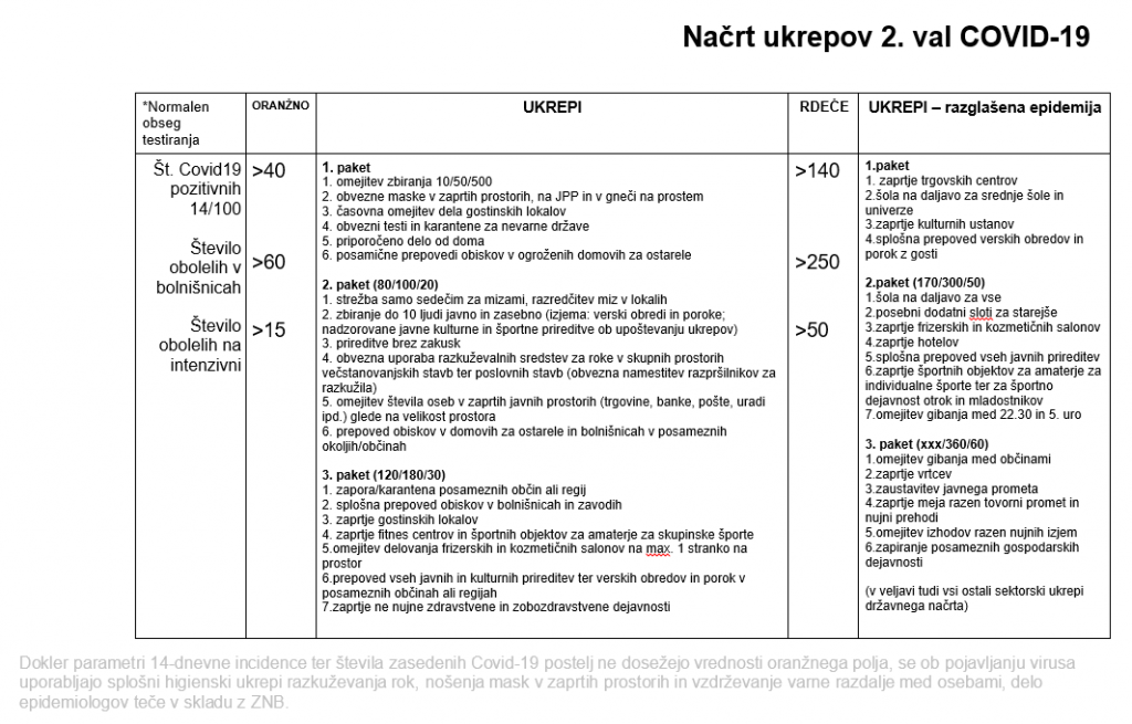 Sledi 3. paket oranžnih ukrepov, ki pomenijo zapora posameznih občin ali regij, prepoved obiskov v bolnišnicah in zavodih, zaprtje gostinskih lokalov, zaprtje fitnes centrov in športnih objektov, omejitev frizerskih in kozmetičnih salonov na 1 osebo, prepoved vseh javnih in kulturnih prireditev ter verskih obredov in porok v posameznih občinah in regijah in zaprtje nenujnih zdravstvenih in zobozdravstvenih dejavnosti!