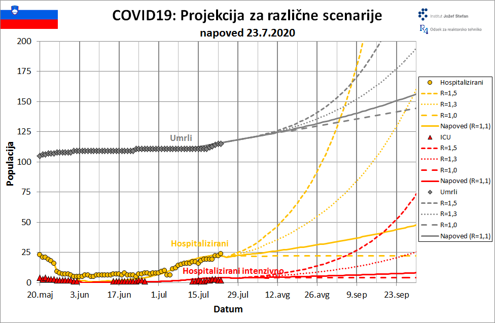 Na Institutu Jožef Stefan so izdelali novo projekcijo širjenja novega koronavirusa. Ocenjujejo, da število novih primerov eksponentno raste, število se podvoji v 35 dneh, medtem ko je efektivno reprodukcijsko število večje od ena. To pomeni, da en okuženi širi virus naprej na več kot eno osebo. Raziskovalci opozarjajo, da to pomeni, da epidemija v Sloveniji morebiti začenja uhajati.