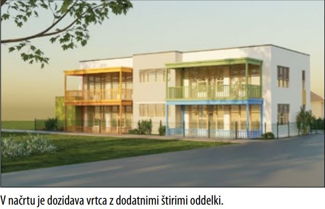 Glede na trenutno število otrok in glede na pričakovano povečanje števila otrok vrtec potrebuje dodatne prostore, zaradi česar je predvidena dozidava vrtca z dodatnimi štirimi oddelki s pripadajočimi prostori in pričakovanim končnim stanjem desetoddelčnega vrtca. Idejno zasnovo je izdelalo podjetje TMD. Sledi izdelava dokumentacije za pridobitev gradbenega dovoljenja in projekt za izvedbo.