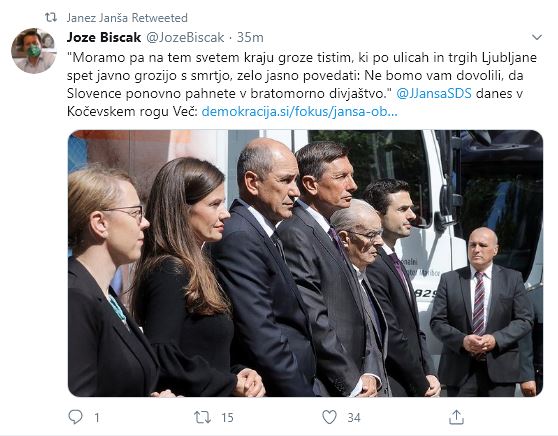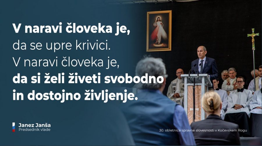 Predsednik Vlade Republike Slovenije Janez Janša je po spravni slovesnosti v Kočevskem Rogu skupaj s predsednikom republike Borutom Pahorjem položil venec k Spomeniku žrtvam NOB v Smrečju pri Turjaku.