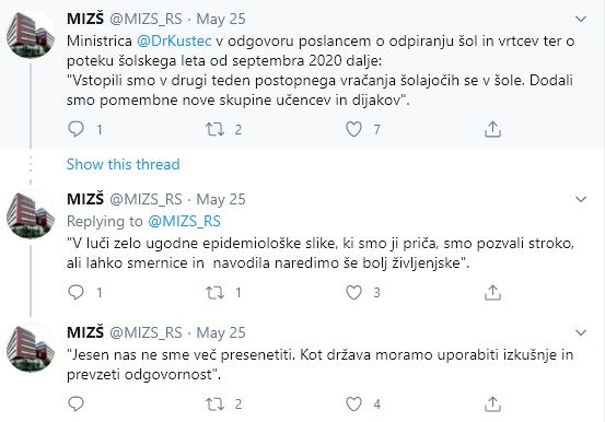 V svoji izjavi se je navezal predvsem na duševno zdravje otrok, ki so morali dva in pol meseca preživeti v karanteni, doma, in od doma opravljati šolske obveznosti. Nekateri otroci so se že vrnili v šolske klopi, nekateri pa se bodo kmalu.