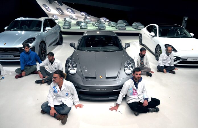V sredo, 19. oktobra, je devet levičarskih aktivistov iz skupine Scientist Rebellion vdrlo v Autostadt, muzej in salon avtomobilov nasproti glavne Volkswagnove tovarne v Wolfsburgu. Kot to običajno počnejo, so se prilepili na tla paviljona Porsche. Tokrat jih je čakalo presenečenje, poroča Daily Mail.