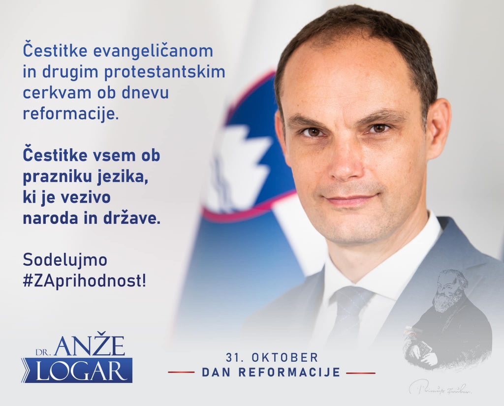 Ob dnevu reformacije posebej čestitam evangeličanom in pripadnikom drugih protestantskih cerkva pri nas. Dan reformacije pa nima samo verske vsebine – za vse Slovenke in Slovence je to praznik jezika ter temelj naše narodne in kulturne identitete. V zahtevnih časih je govorica slovenskega jezika uteha posamezniku, najodličnejše orodje kulture in vezivo naroda in države.