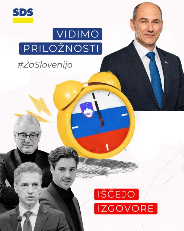 SDS poudarja, da Slovenija potrebuje odločnost, ne izgovorov. Stranka sporoča, da so priložnosti za razvoj realne, a jih je mogoče uresničiti le z učinkovito državo, jasnimi cilji in pogumom za reforme. Po poročanju SDS kampanja #ZaSlovenijo zahteva politiko rezultatov.