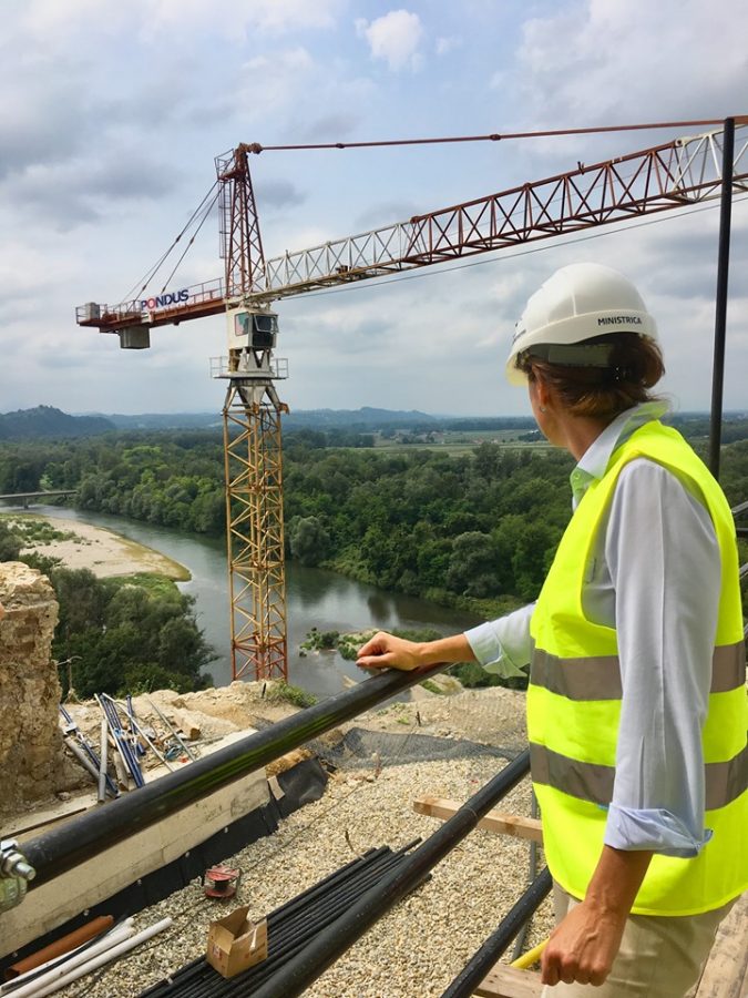 V družbi župana občine Kidričevo Antona Leskovarja si je ogledala zaključna dela ureditve 2,1 km ceste skozi Lovrenc na Dravskem polju, kasneje pa ob navzočnosti županje Cirkulan Antonije Žumbar tudi sanacijo brežine, zidu in terase gradu Borl.