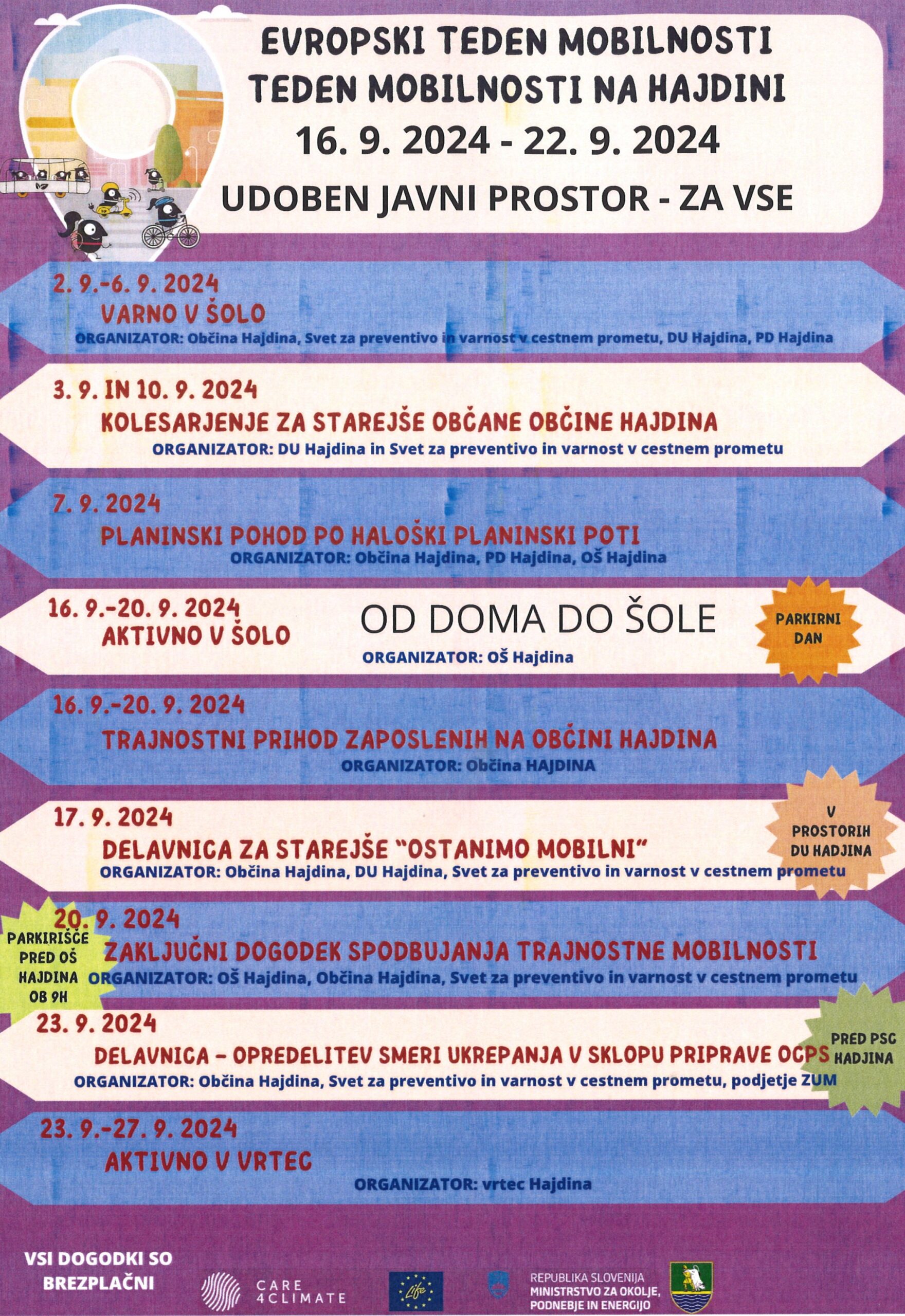 Organizator: Občina Hajdina, PD Hajdina, OŠ Hajdina - 16. 9. – 20. 9. 2024: Aktivno v šolo