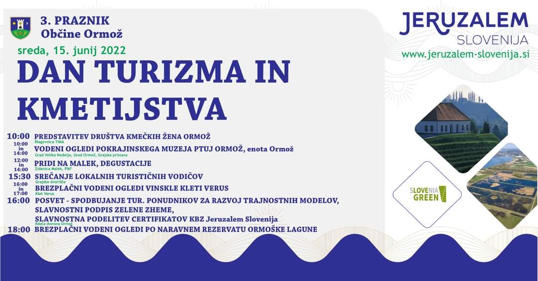 Ormož – dan turizma in kmetijstva 15. junija, 2022 Delite na Facebooku Deli na Twitterju V sklopu 3. praznika Občine Ormož se danes odvija t.i. DAN TURIZMA IN KMETIJSTVA, ki predstavlja izredno pomembno področje gospodarstva v občini Ormož. Vabljeni, da se pridružite. Program najdete v fotografiji.