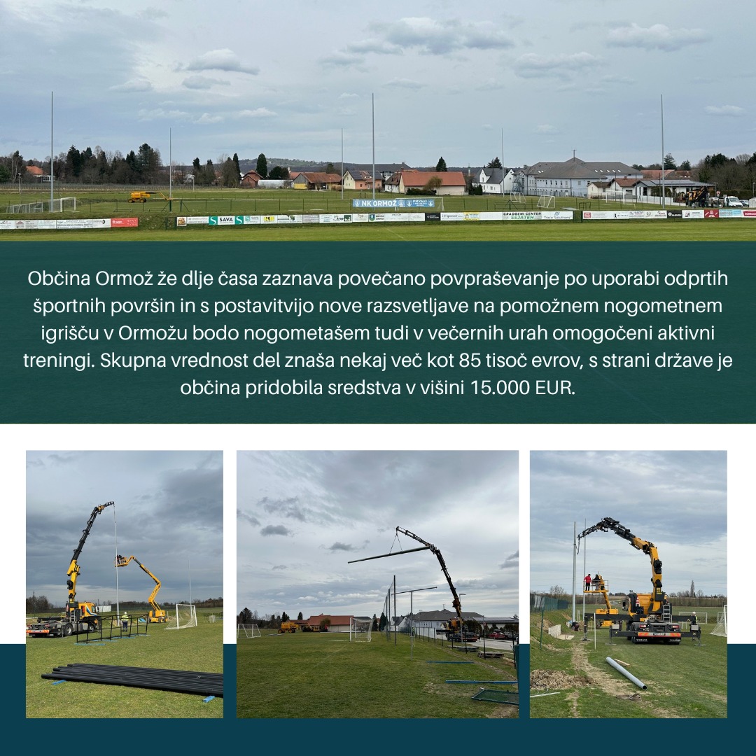 V Ormožu poteka namestitev nove razsvetljave na pomožnem nogometnem igrišču, kar bo omogočilo izvajanje športnih aktivnosti tudi v poznih večernih urah. Ta dolgo pričakovana nadgradnja je odgovor na prošnje lokalnih nogometašev in Nogometnega kluba Ormož za vzpostavitev standardom ustrezajočih igralnih površin, ki bodo omogočale nočne treninge, športne dogodke in rekreativno igro. Cilj je jasen: izboljšati športne dosežke in spodbuditi večjo udeležbo v nogometu.