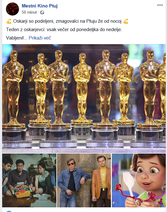 Zmagovalce – najvišje filmske nagrade oskarje si lahko na Ptuju v Mestnem kinu (ponovno) ogledamo že ta teden, saj se je že sinoči pričel Teden z oskarjevci na Ptuju. Vsak dan od ponedeljka, 10. februarja do nedelje, 16. februarja bodo v ptujskem kinu na ogled letošnji nagrajeni filmi.