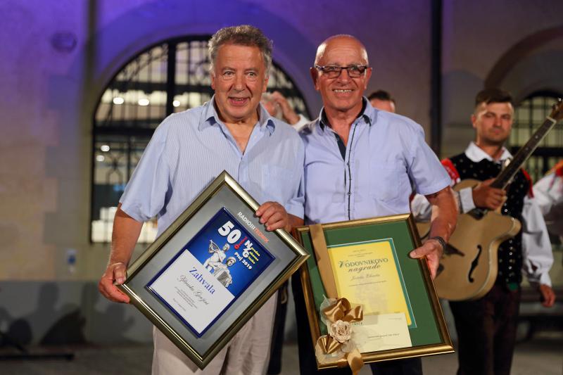 Zahvala Zdravku Geržini (levo) in Jožetu Ekartu (na desni) posebna nagrada na jubilejnem festivalu. Foto: Črtomir Goznik