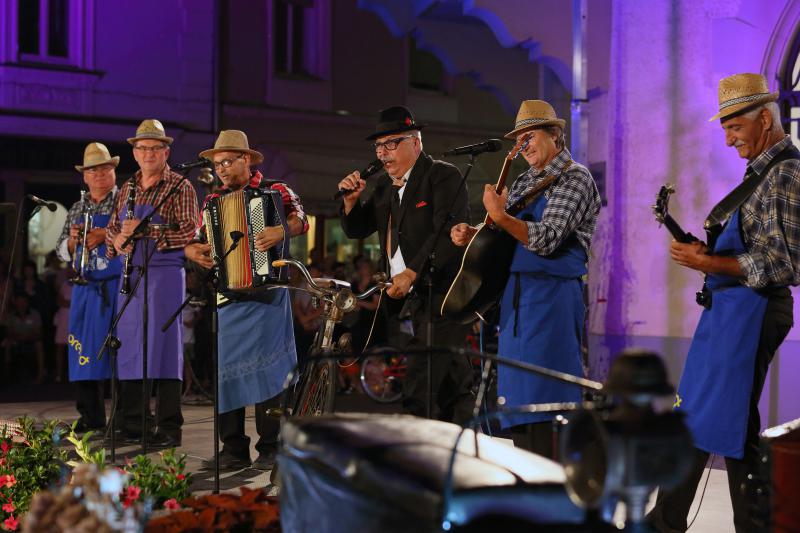 Množica obiskovalcev na Mestnem trgu je poslušala 32 nagrajenih skladb iz 50-letne zgodovine Ptujskega festivala, ki so se potegovale za naj festivalsko vižo.