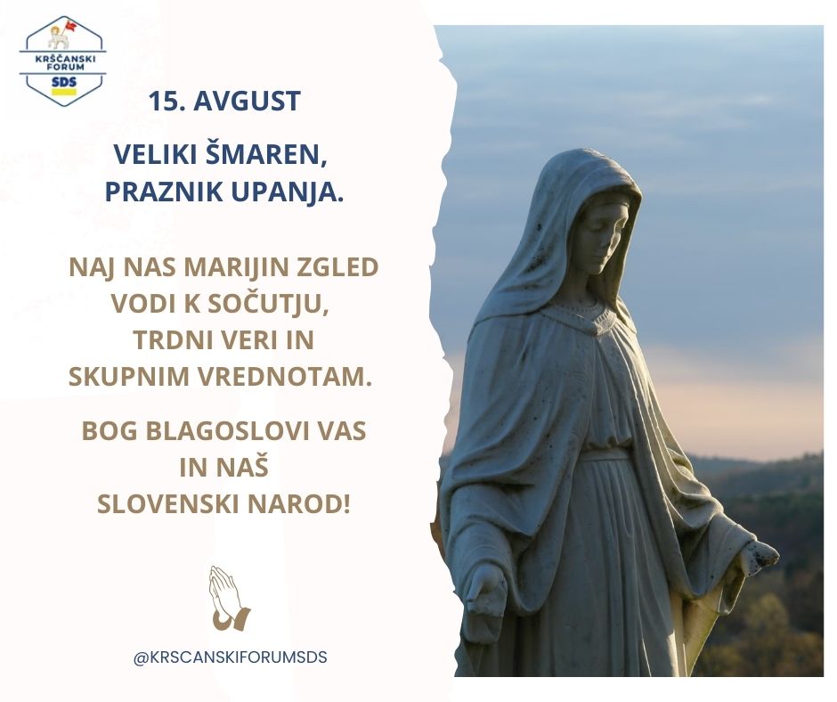 Kot poudarjajo v Krščanskem forumu SDS, prav praznovanja, kot je Veliki šmaren, prebujajo zavedanje o vrednotah, ki nas povezujejo: vera, domovina, spoštovanje drug drugega in odgovornost do družine ter skupnosti. Gre za vrednote, ki jih z doslednostjo in zavzetostjo uresničuje tudi SDS, zavezana gradnji trdnih temeljev narodne prihodnosti.