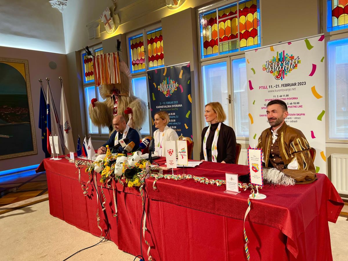 Na današnji novinarski konferenci so program letošnjega Kurentovanja predstavili: ga. Nuška Gajšek, županja MO Ptuj, ga. Tanja Srečkovič Bolšec, direktorica Zavoda za turizem Ptuj, g. Hinko Šoštarič, Vitez Hinko Sodinski, plemeniti Gall, princ karnevala, ter g. Drago Slameršak, direktor družbe Radio Tednik Ptuj d.o.o., organizator zasebnega dela Kurentovanja.