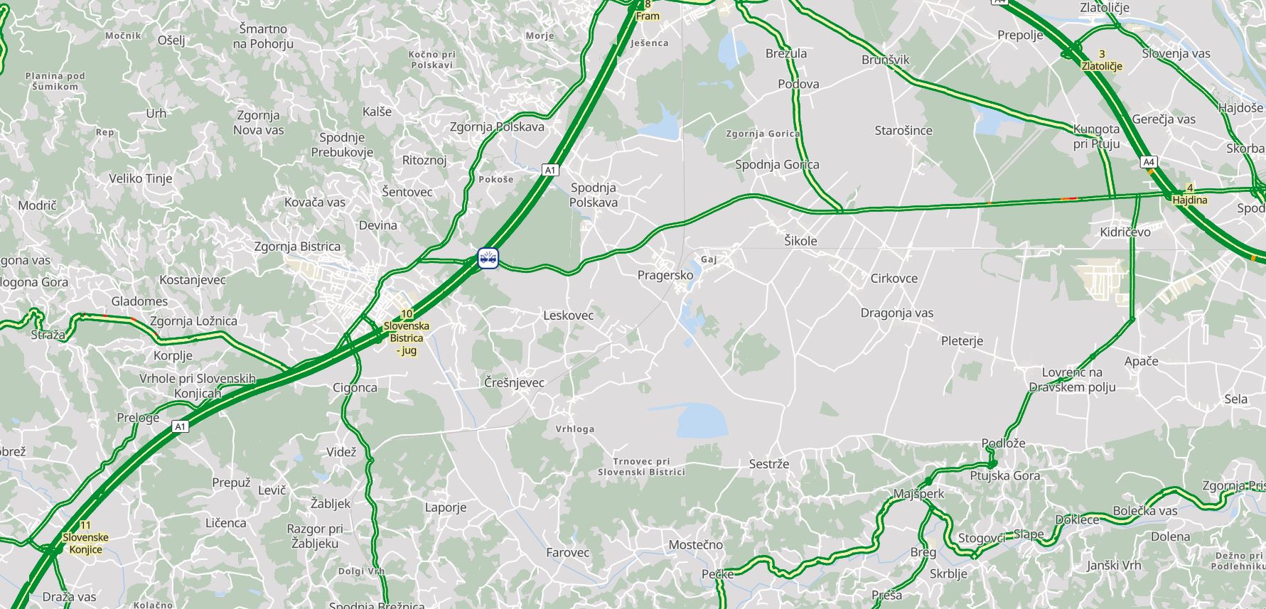 Na glavni cesti Slovenska Bistrica – Ptuj je pri avtocestnem priključku Slovenska Bistrica sever promet urejen izmenično enosmerno.