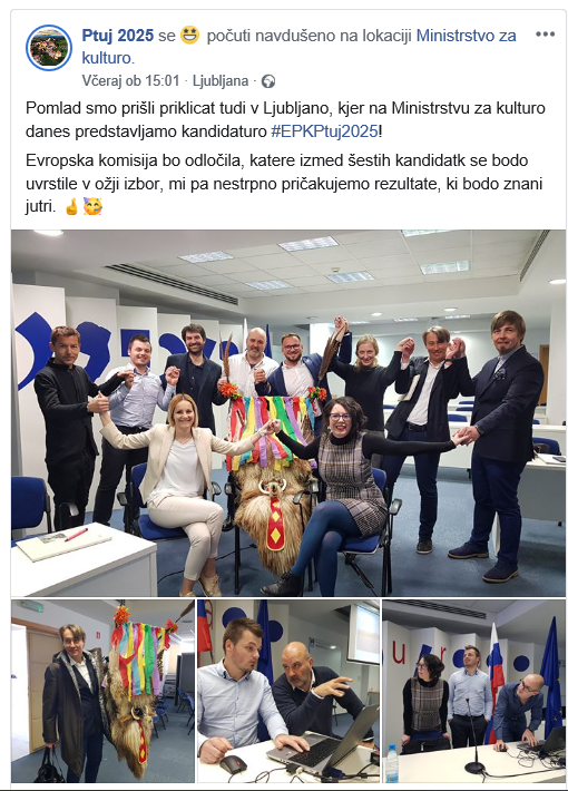 Cilj razpisa je bil spodbuditi prijave iz mest v Sloveniji, ki se želijo potegovati za naziv Evropska prestolnica kulture za leto 2025, in imenovanje enega od teh mest, ki se mu lahko podeli tudi nagrada Meline Mercouri. Razpis se je zaključil 31. decembra lani, v tem tednu pa so na kulturnem ministrstvu potekale predstavitve vseh šestih prijavljenih mest, torej tudi Ptuja.