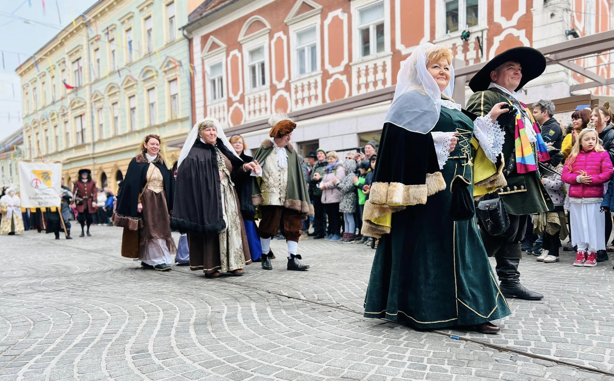 Na pustno soboto so se po Mestnem trgu sprehodili našemljeni meščani, ki so zbrane spomnili na izjemno bogato pustno tradicijo. Korzo tako obuja tradicijo iz leta 1873, ko so se v prvi povorki po mestu z vozovi vozili našemljeni meščani.
