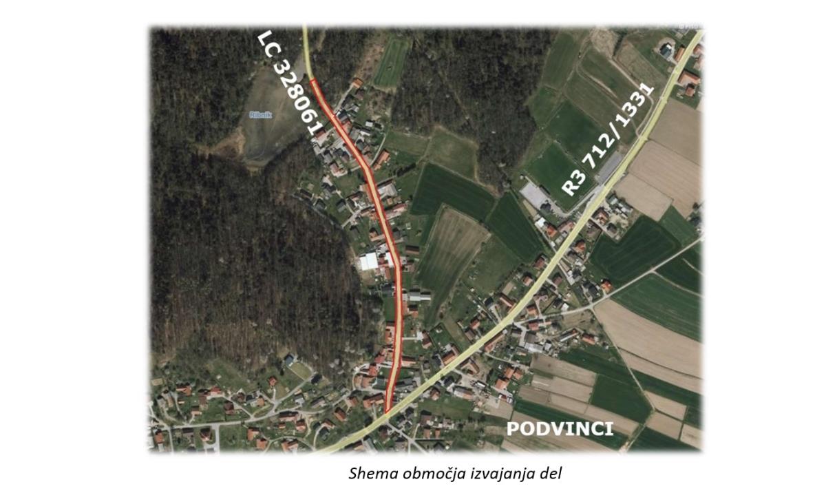 Obveščamo vas, da bomo predvidoma jutri, 20. 9. 2021 pričeli z razširitvijo ceste Podvinci – Spodnji Velovlek, od Podvincev od h. št. 39 do h. št. 60, v širini 1,5 m in dolžini 600 m. Izvedla se bo razširitev vozišča z asfaltiranjem, gradnja nove meteorne kanalizacije po obstoječem jarku, delna obnova druge komunalne infrastrukture (telekom, kabelskih in elektro vodov) ter zaris novih pomožnih kolesarskih pasov.