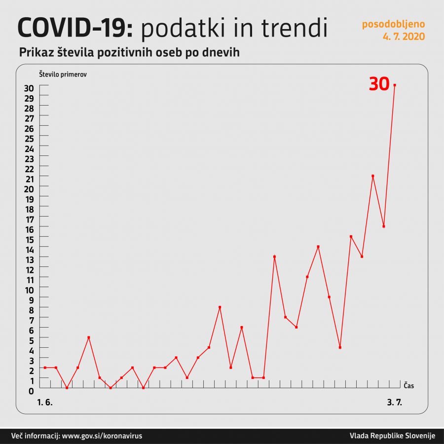 Trend obolelosti s koronavirusom v Sloveniji na dan 3.7.2020 (00:00-24:00):