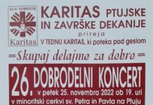 KARITAS PTUJSKE IN ZAVRŠKE DEKANIJE prireja v Tednu Karitas, ki poteka pod geslom »Skupaj delajmo za dobro«, 26. dobrodelni koncert. Koncert bo v petek, 25....
