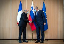 Janša in Logar sprejela ministra za Evropo in zunanje zadeve Francije  Jean-Yves Le Drian.