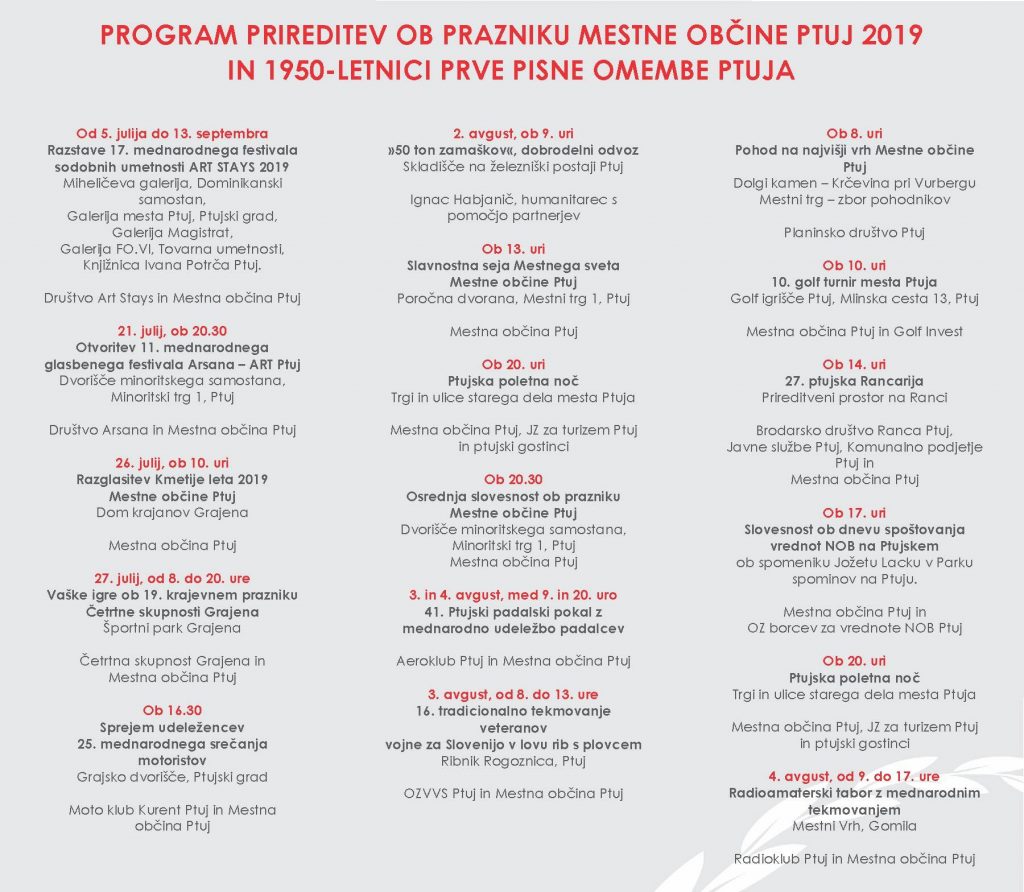 Na Ptuju je praznično tudi danes, ko so na sporedu zanimivi in tradicionalni športno-družabni dogodki, med temi tudi tradicionalna že 27. ptujska Rancarija. Praznovanje bodo Ptujčani sklenili z večerno zabavo Ptujska noč 2019 na ulicah in trgih starega mesta.