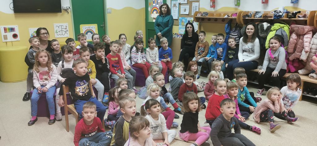 Starejšim trem skupinam otrok je pripovedovala pravljici Sneženi mož ter Prelepa, za konec pa jim je recitirala pesem o pustu. Otroci so se seznanili s knjigami iz različnih materialov in z različnimi vidnimi in slušnimi efekti.