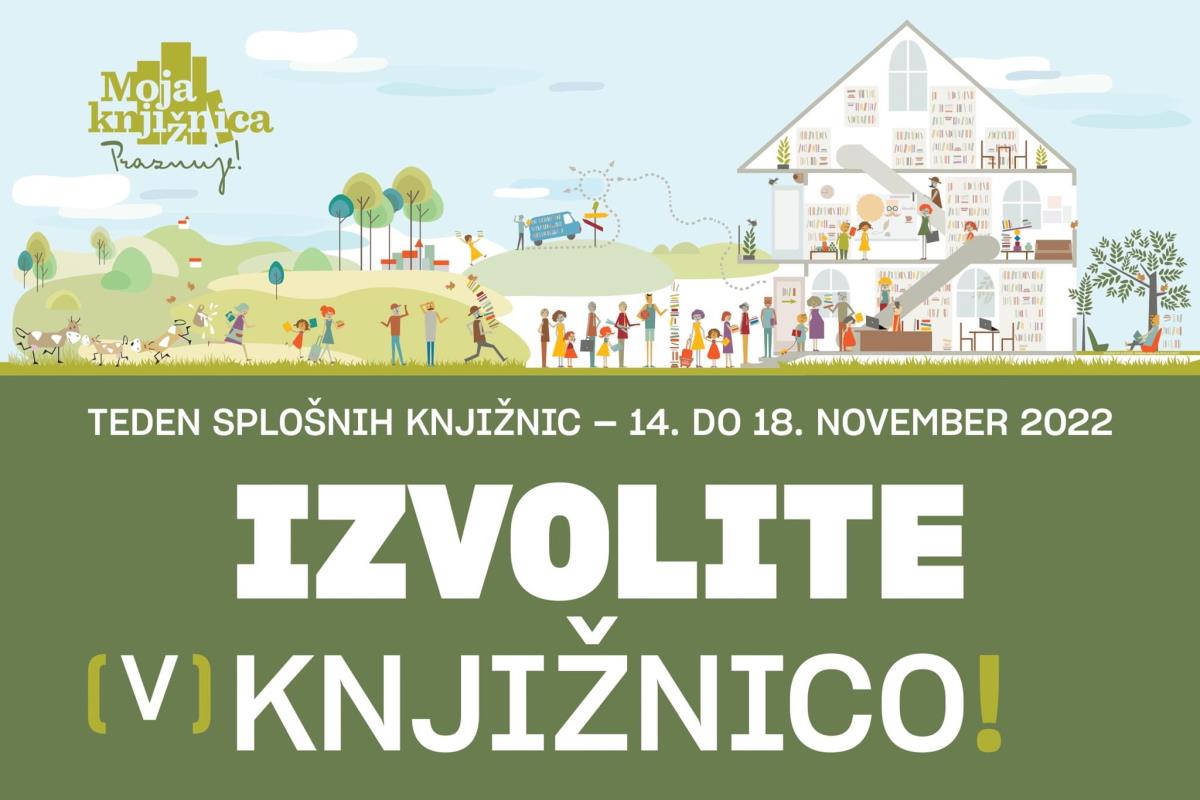 Med 14. in 18. novembrom 2022 knjižnice po vsej Sloveniji praznujemo Teden splošnih knjižnic. V prihajajočih dneh se bodo v knjižnicah zvrstili različnih dogodki, s katerimi želimo nagovoriti vse prebivalce v lokalnih skupnostih, zveste obiskovalce knjižnic in tudi tiste, ki v knjižnice ne zahajajo.