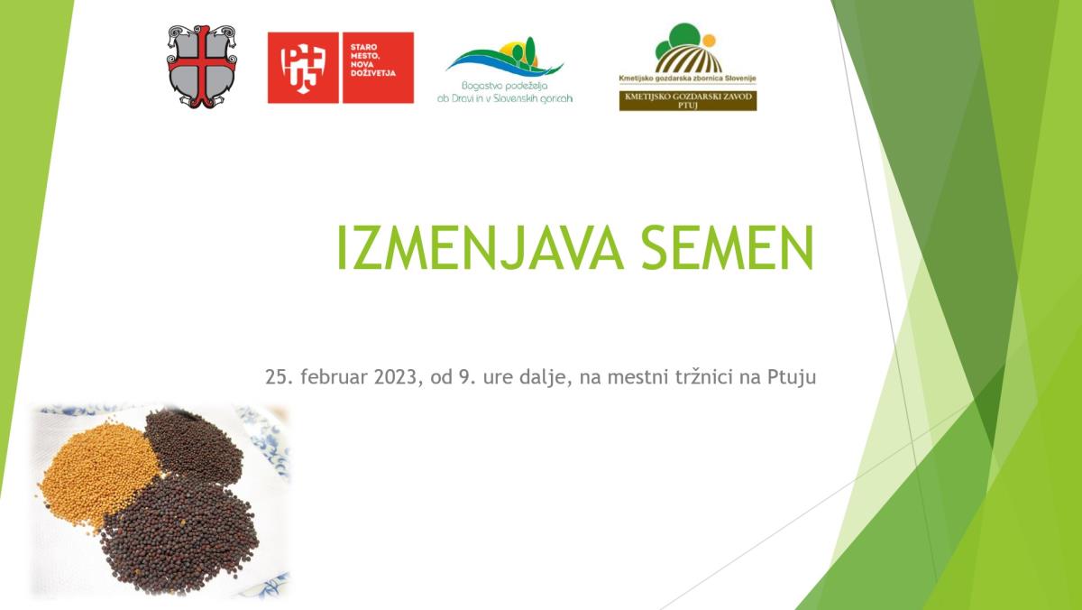 Društvo gospodinj Spuhlja, Društvo podeželskih žena občine Markovci, Mestna občina Ptuj, Zavod za turizem Ptuj, LAS Bogastvo Podeželja ob Dravi in v Slovenskih Goricah, KGZS Zavod Ptuj vabijo na IZMENJAVO SEMEN, ki bo 25. februarja 2023 v Večnamenski dvorani v Spuhlji.