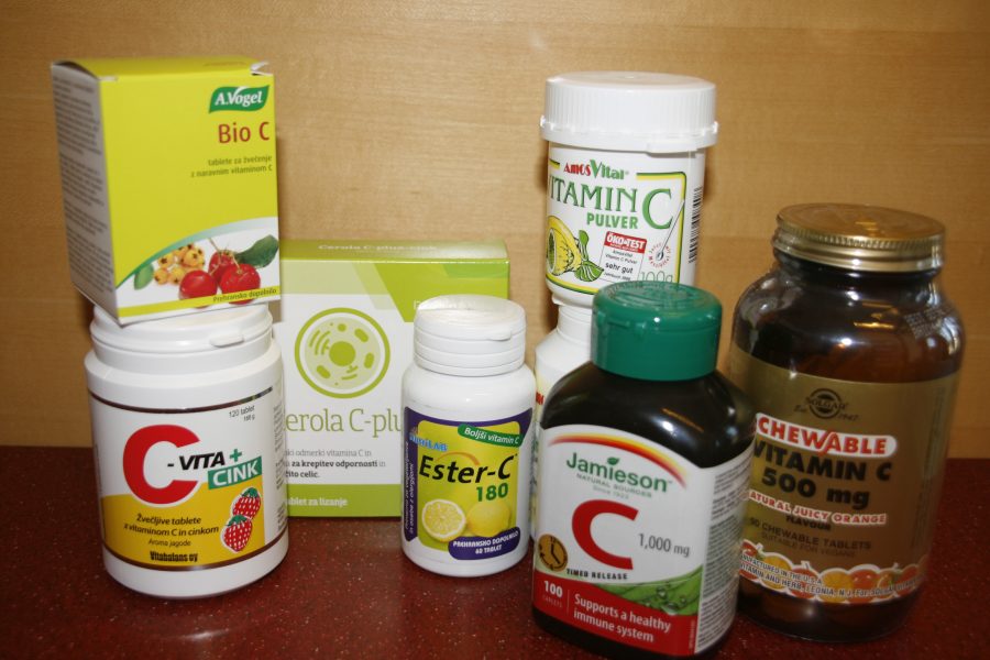 V lekarni imamo več izdelkov, ki vsebujejo ta vitamin. Lahko so v obliki tablet, šumečih tablet, naravnih sokov, napitkov in kapsul. Dodan pa je tudi zdravilom, ki delujejo proti gripi in prehladu.