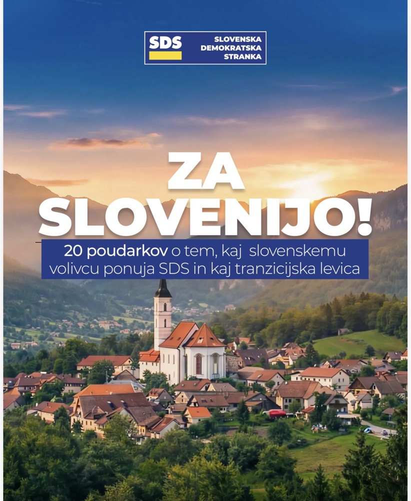 Slovenska demokratska stranka je v okviru kampanje Za Slovenijo pripravila nabor 20 ključnih poudarkov o tem, kaj slovenskemu volivcu ponuja SDS in kaj tranzicijska levica (Gibanje Svoboda, SD in Levica). Kot so objavili na sds.si, želi SDS volivcem pred volitvami ponuditi jasno sliko razlik, saj do volitev gradi “koalicijo z volivci” na temeljih razvojnih rešitev za Slovenijo. Razlike med programom SDS in ravnanji trenutne leve oblasti so nazorne – tranzicijska levica po oceni SDS stavi na visoke davke, več birokracije, centralizacijo in ideološke eksperimente, medtem ko SDS obljublja nižje davke, vitkejšo in učinkovitejšo državo, decentralizacijo ter rešitve, ki dejansko izboljšujejo življenje ljudi.
