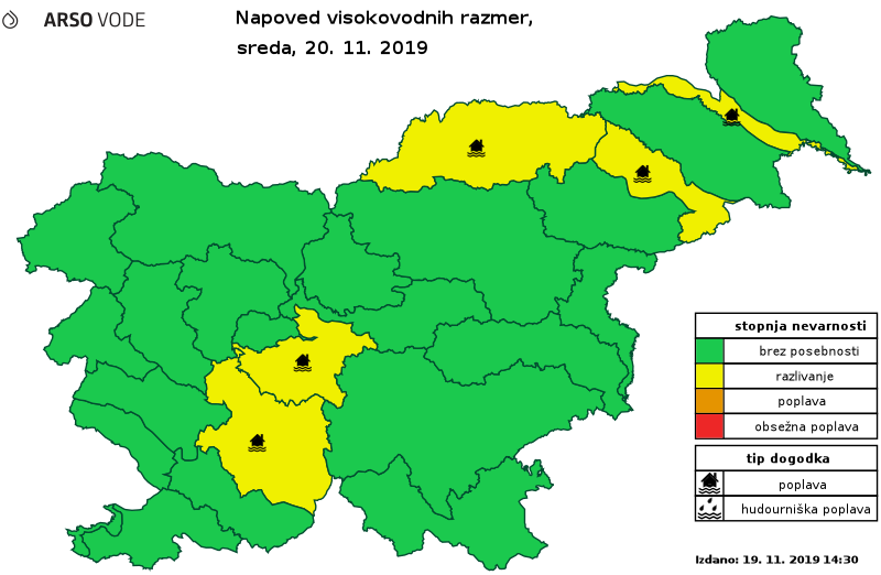 Hidrološko stanje in napoved danes ob 14. uri