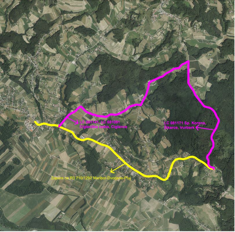 Organizator prireditve Univerzitetna športna zveza Maribor, obvešča vse udeležence v prometu, da bo zaradi izvedbe kolesarske dirke leta » ZLATI KROG S PRIMOŽEM ROGLIČEM « kratkotrajna zapora v spremstvu policije (situacija 1) in popolna zapora R3 710/1292 v km 9,900 do 13,345 max. 30 min (situacija 2), dne 9.10.2022 med 9:00 in 14:00 uro