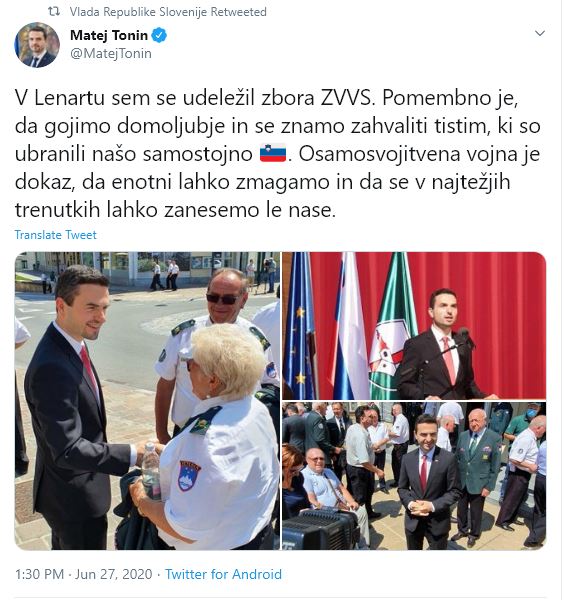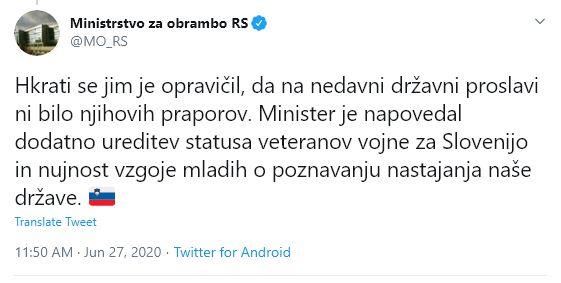 Minister napovedal ureditev statusa veterana vojne za Slovenijo. Foto: Twitter